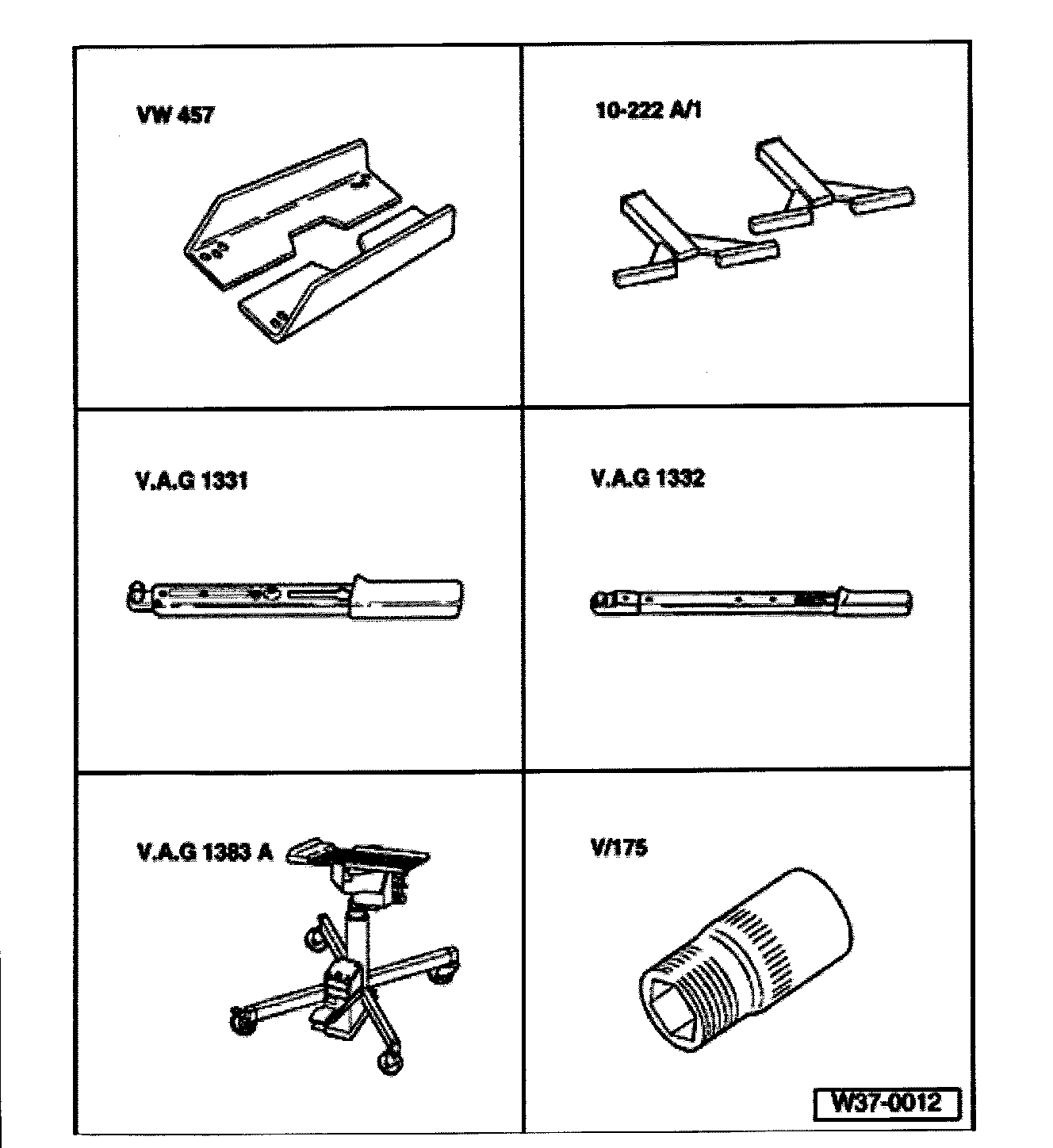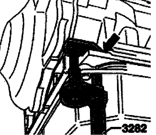 - Move jack V.A.G 1383 A with support 3282 under transmission and support it.