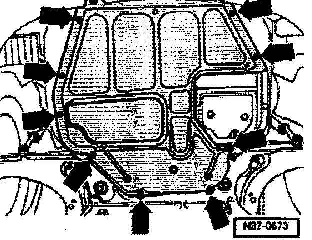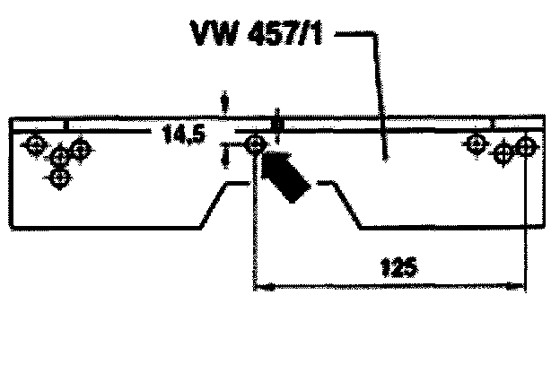 - Drill a 8.5 mm diameter hole (arrow) in support rail VW 457/1.