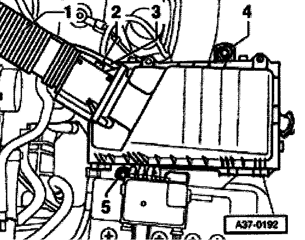 - Pull intake hose -1- and connector -2- off mass air flow meter.