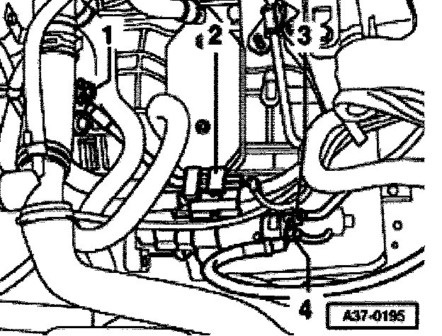 - Place selector lever in "P" and pry selector lever cable -1- off lever/selector shaft -4- with a screwdriver.