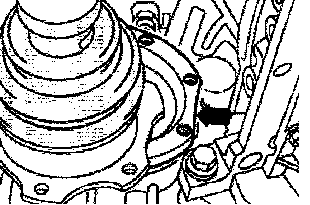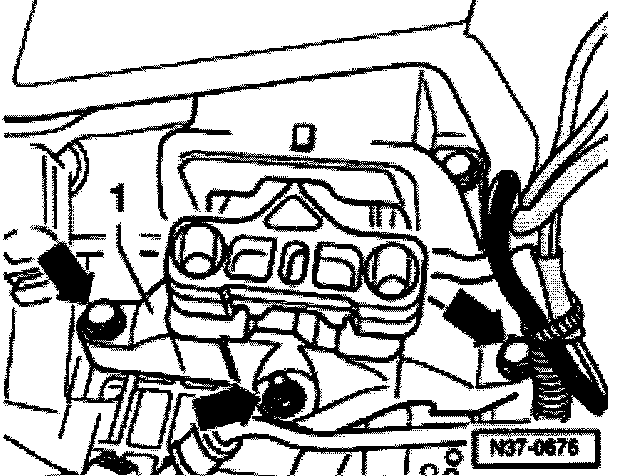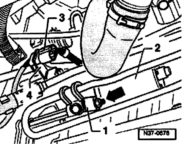 - Remove bracket -1- for power steering pressure line from lower starter bolt -arrow-.