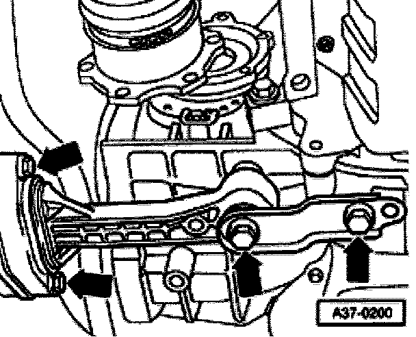 - Remove circlip -3- at selector lever cable support bracket and remove selector lever cable.