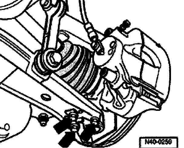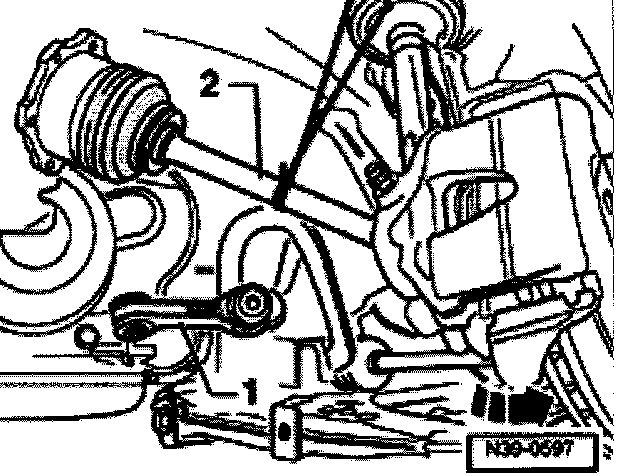 - Disconnect left coupling rod -1- from control arm and turn rod upward.