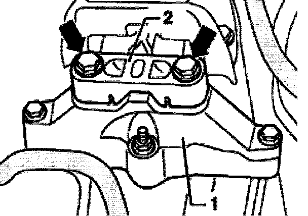 - Disconnect battery Ground cable -1- from upper engine/transmission securing bolt.