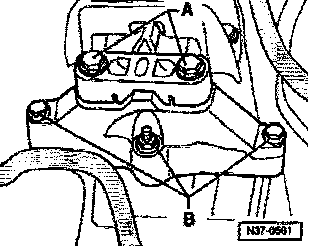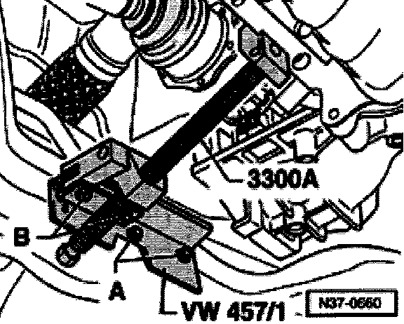 - Bolt support rail VW 457/1 to both pendulum support securing holes on subframe.