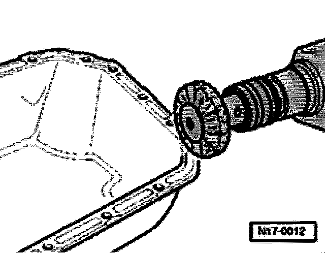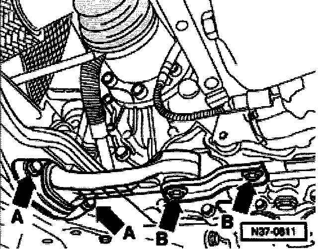 - Remove power steering line from rear of transmission (in area of pendulum support) and tie to one side.