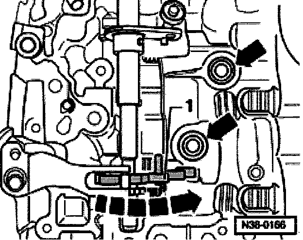 - Move selector shaft left and right and watch manual valve -arrow-.