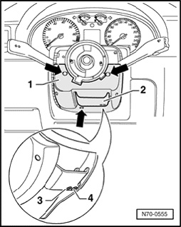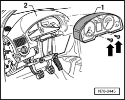 - Lower instrument cluster - 1 - slightly and remove from instrument panel - 2 -.