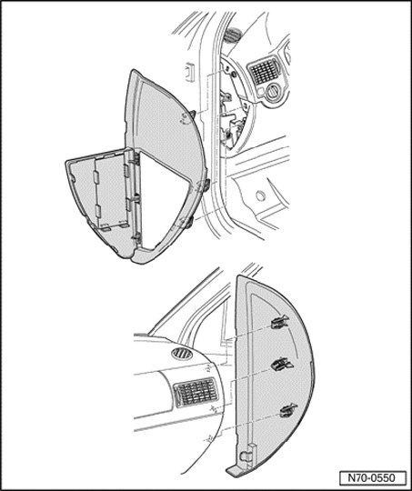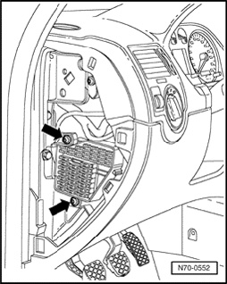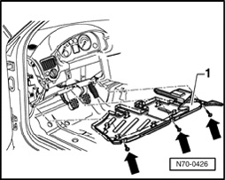 - Remove screw - 2 - and remove air outlet from instrument panel.