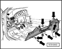 - Remove bolts - arrows - (tightening torque 3 Nm).