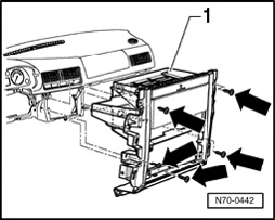 NOTE: Unclip front section of trim - 1 - horizontally from instrument cluster.