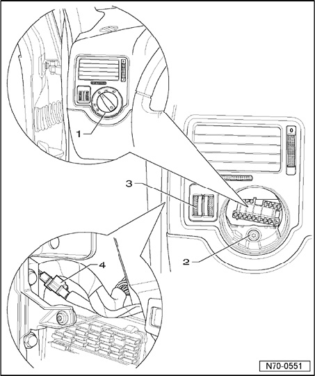 - Press in headlight switch - 1 -, turn toward right and remove.