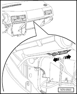 - Disconnect harness connector for air outlet indicator - arrow -.
