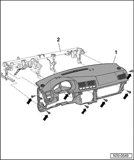 - Remove instrument panel - 1 - from crossmember - 2 -.