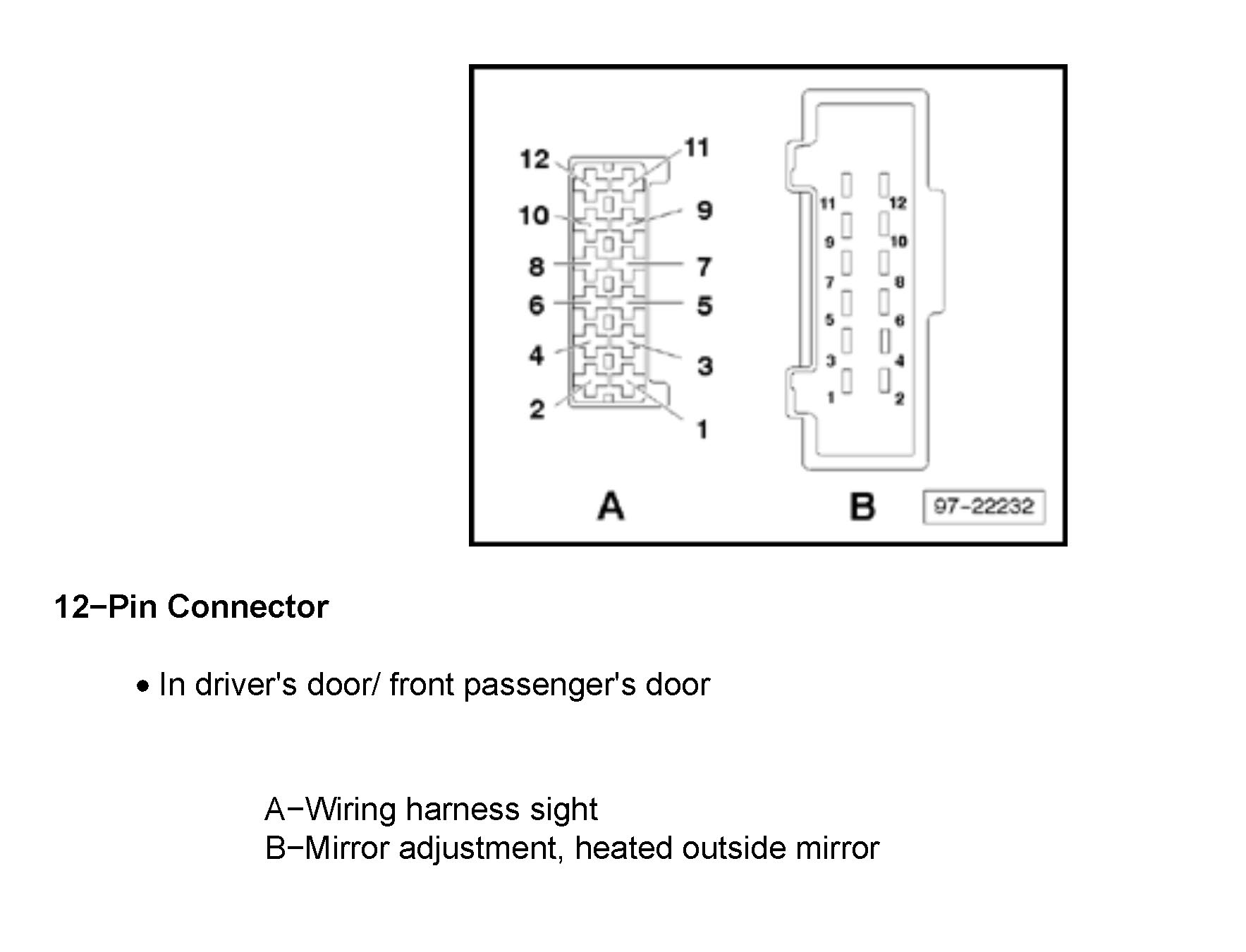 12-Pin Connector, In Driver Door/Front Passenger Door