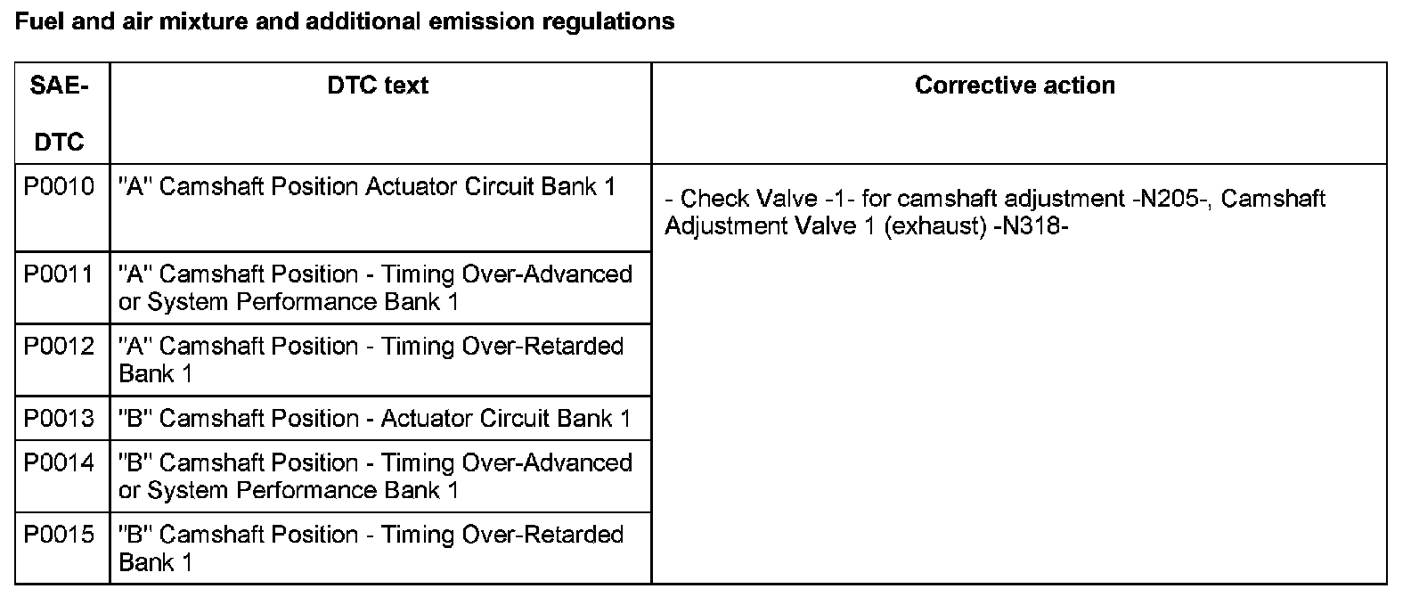 DTC P0010 - P0015: