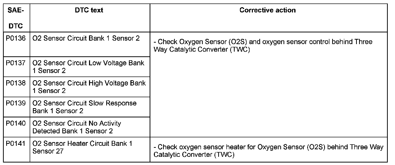 DTC P0136 - P0141: