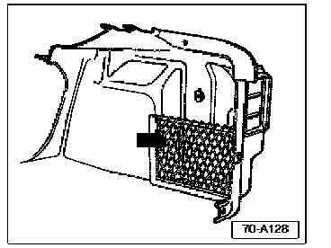 - Remove right side luggage compartment trim panel (see Repair Manual Repair group 70 - Right luggage compartment trim).