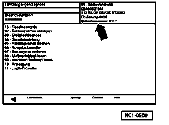 - Press button on display for "Vehicle On Board Diagnostic" -arrow-.