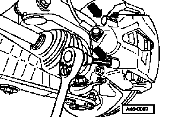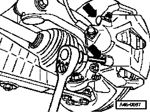 - Disconnect connector -1- on vehicles with a brake pad wear indicator.