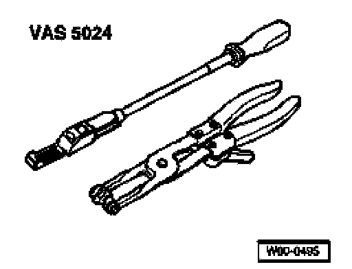 ^ Assembly tool VAS 5024 or hose clip pliers VAG 1921 are recommended for installing spring-type clips.