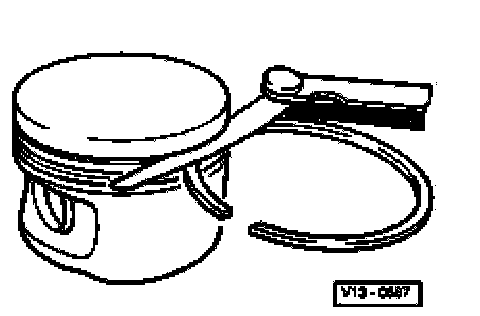 Note: If a new installation tool (funnel) is used to install the pistons, first pass piston with oiled piston rings through the funnel twice and remove the resulting metal shavings if necessary. Only then install piston with piston rings.