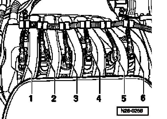 - Remove ignition coils with final output stage for cylinders 1 6 using puller T10095.