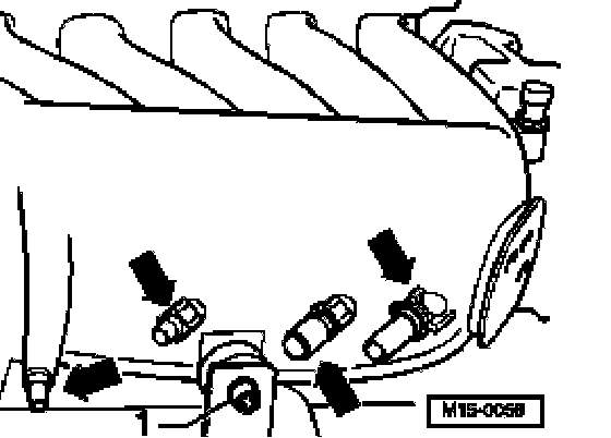 - Remove retaining frame on cylinder head for fuel lines and wiring harness -arrows-.
