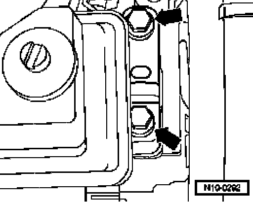 - Unbolt engine side of assembly mounting from top of engine bracket -arrows-.
