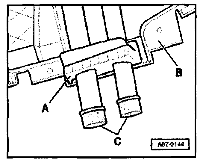 - Insert seal -A- for refrigerant lines -C- in between housing halves -B-.