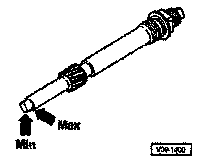 The difference between Min. and Max. is 0.1 liters. Excess oil can be drawn off using extraction system V.A.G 1358 A.