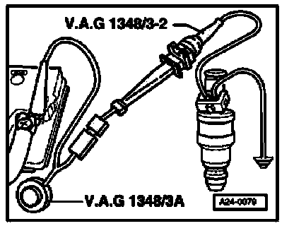 - Using adapter cables connect the second fuel injector terminal to remote control VAG 1348/3 with adapter cable VAG 1348/3-2.