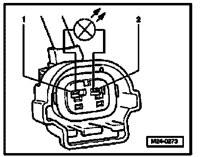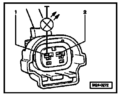 - Connect VAG 1527 LED test light to terminal 1 and ground (GND) of relevant fuel injector connector using adapter cables from VAG 1594.