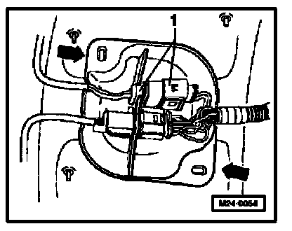 - Remove protective cover -arrows-and disconnect 4-pin connector (black) -1- to Oxygen Sensor (O2S) Behind Three Way Catalytic Converter (TWC) -G130-.