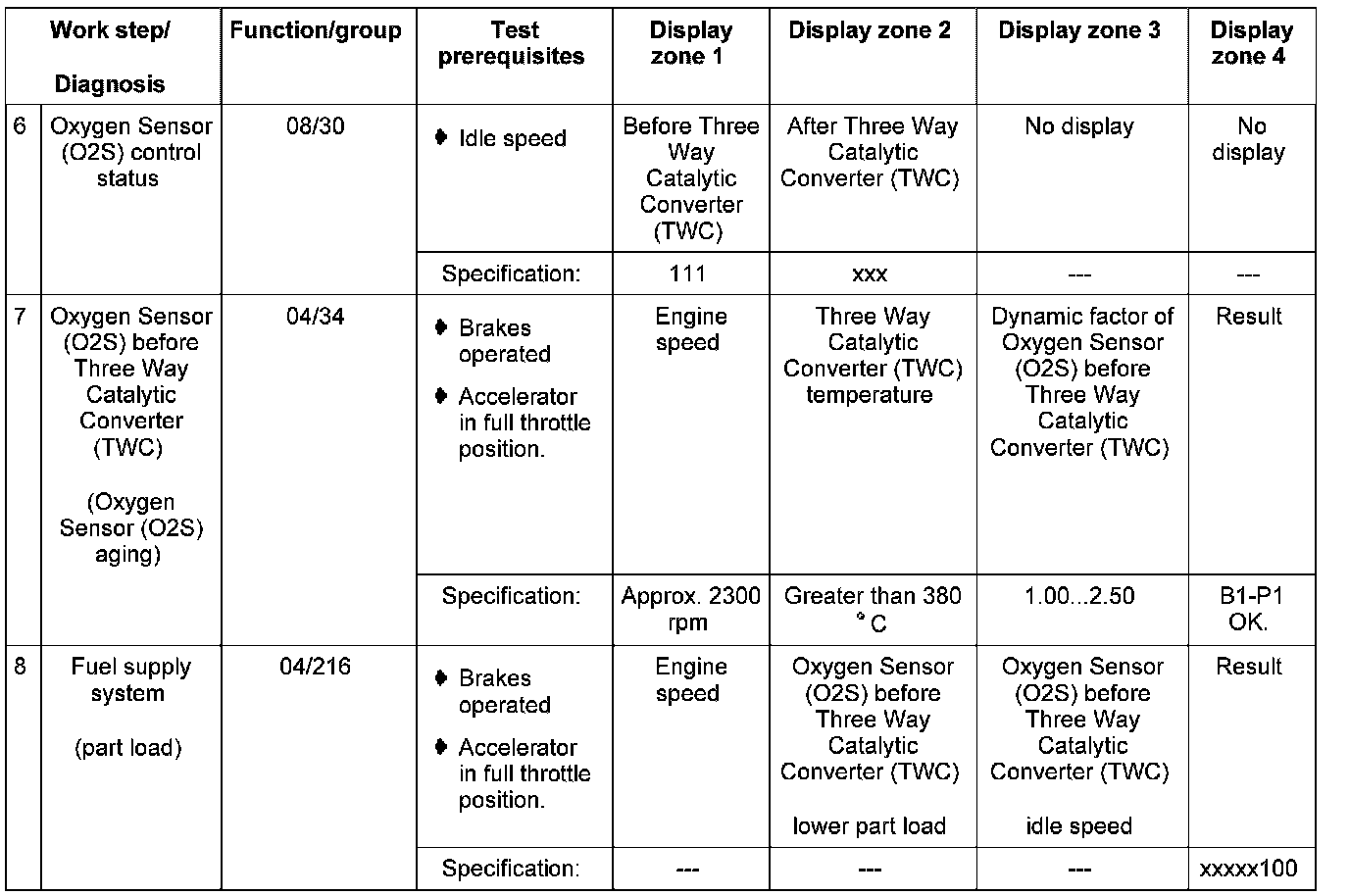 Work step 6: Oxygen Sensor (O2S) control diagnosis status before Three Way Catalytic Converter (TWC)