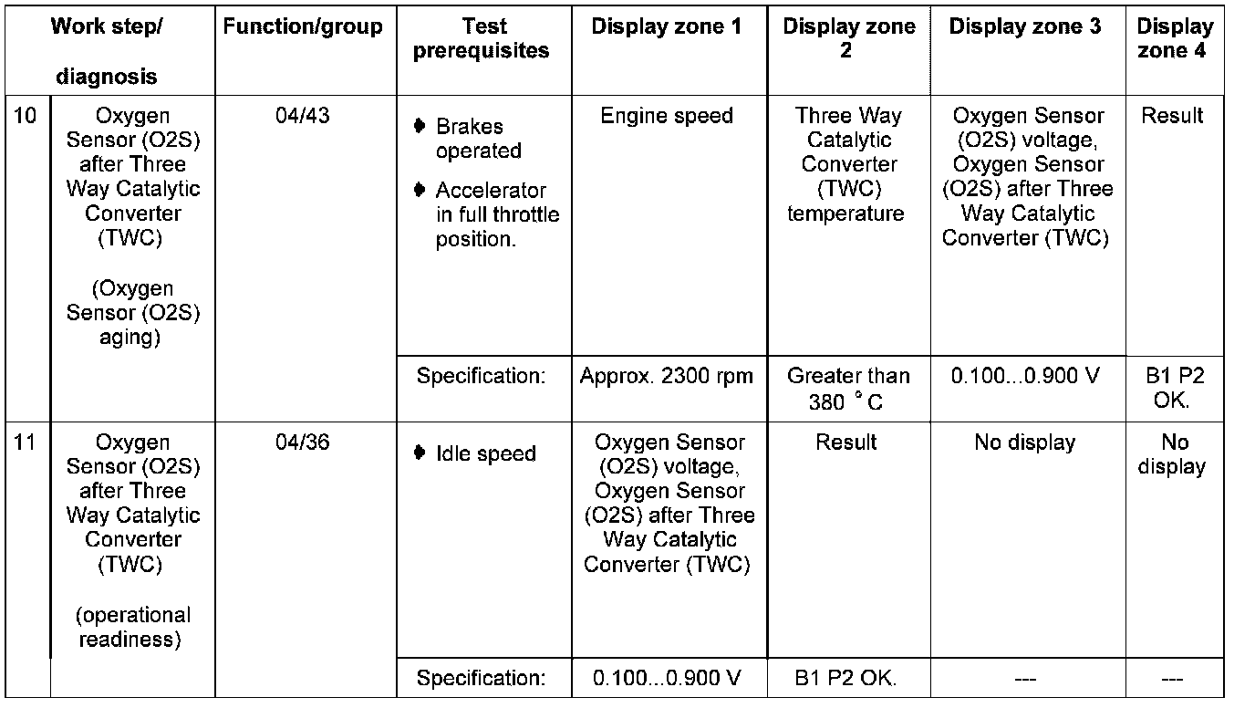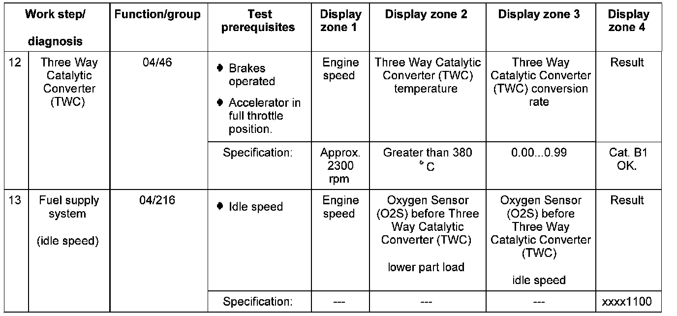 Work step 12: Three Way Catalytic Converter (TWC) diagnosis (checking conversion)