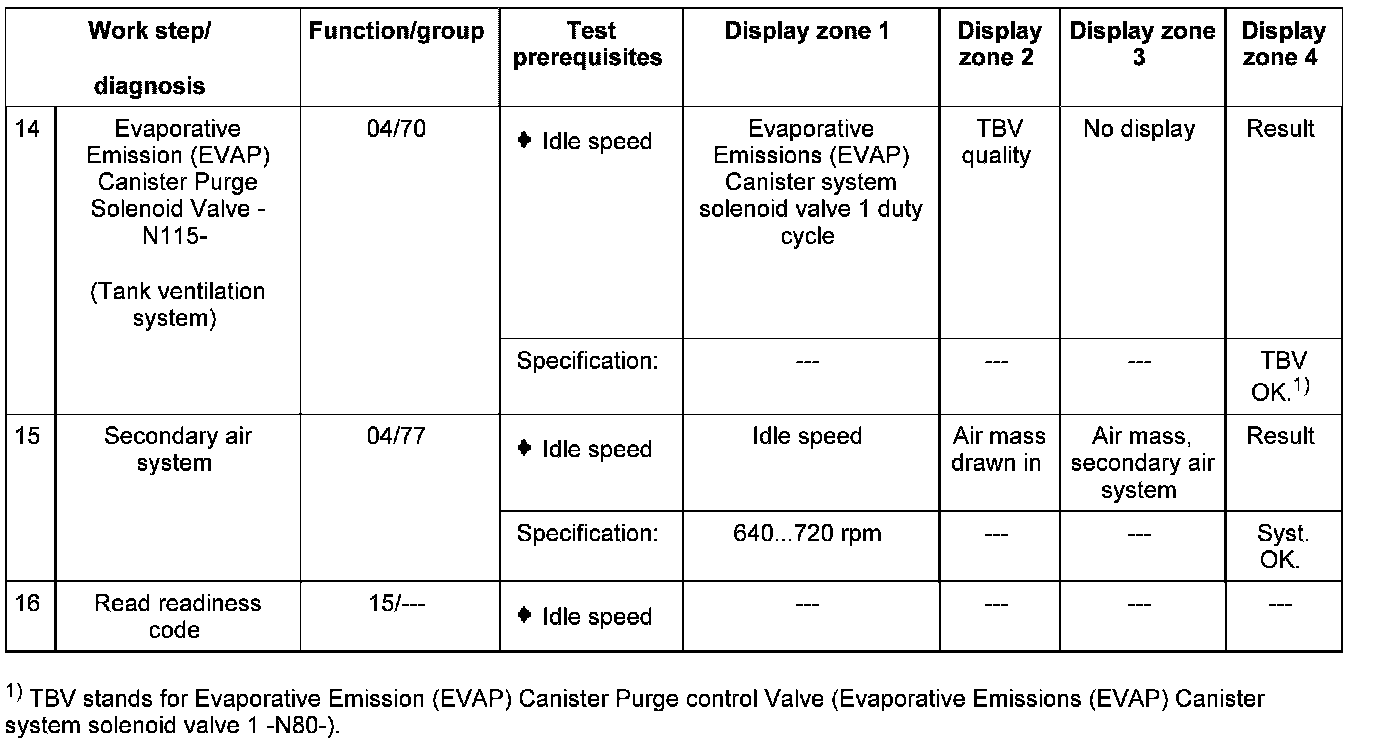 Work step 14: Evaporative Emissions (EVAP) Canister system solenoid valve 1 diagnosis (Tank ventilation system)