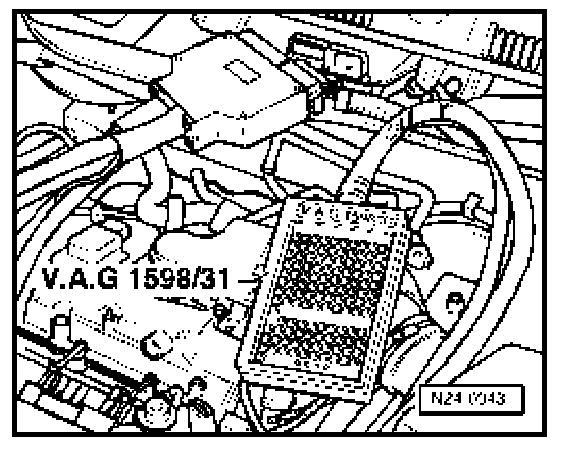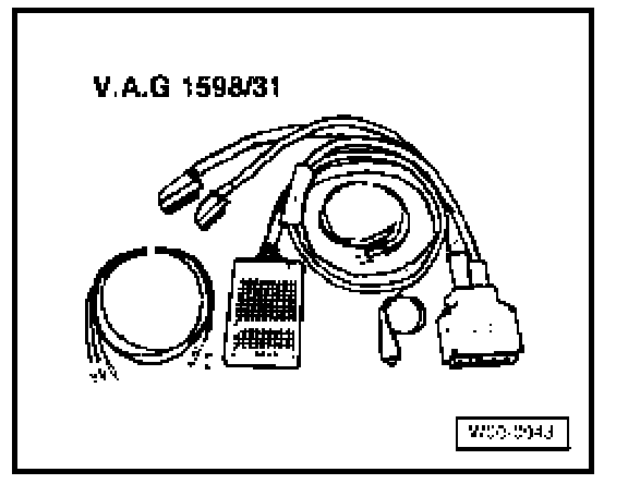 - Connect VAG1598/31 test box at control module wiring harness. Engine Control Module (ECM) is not connected.