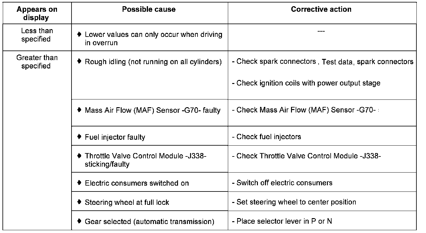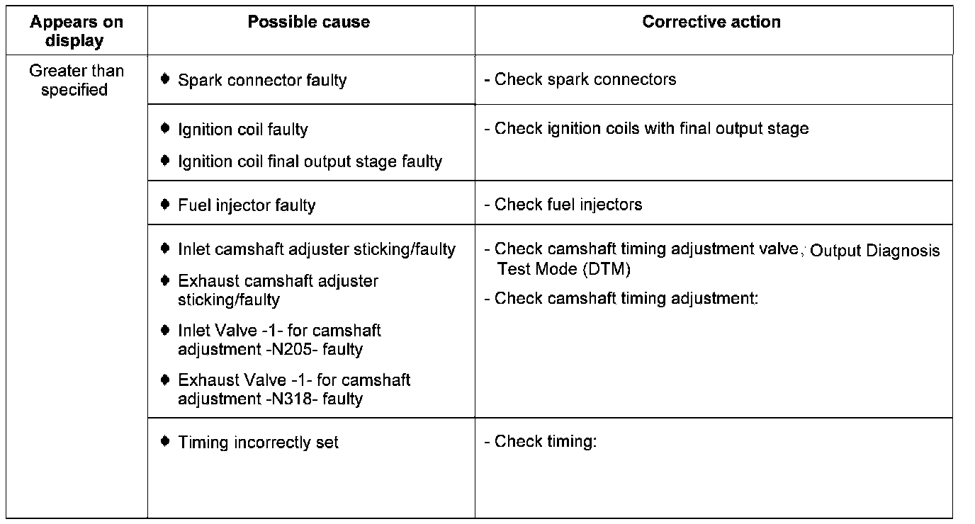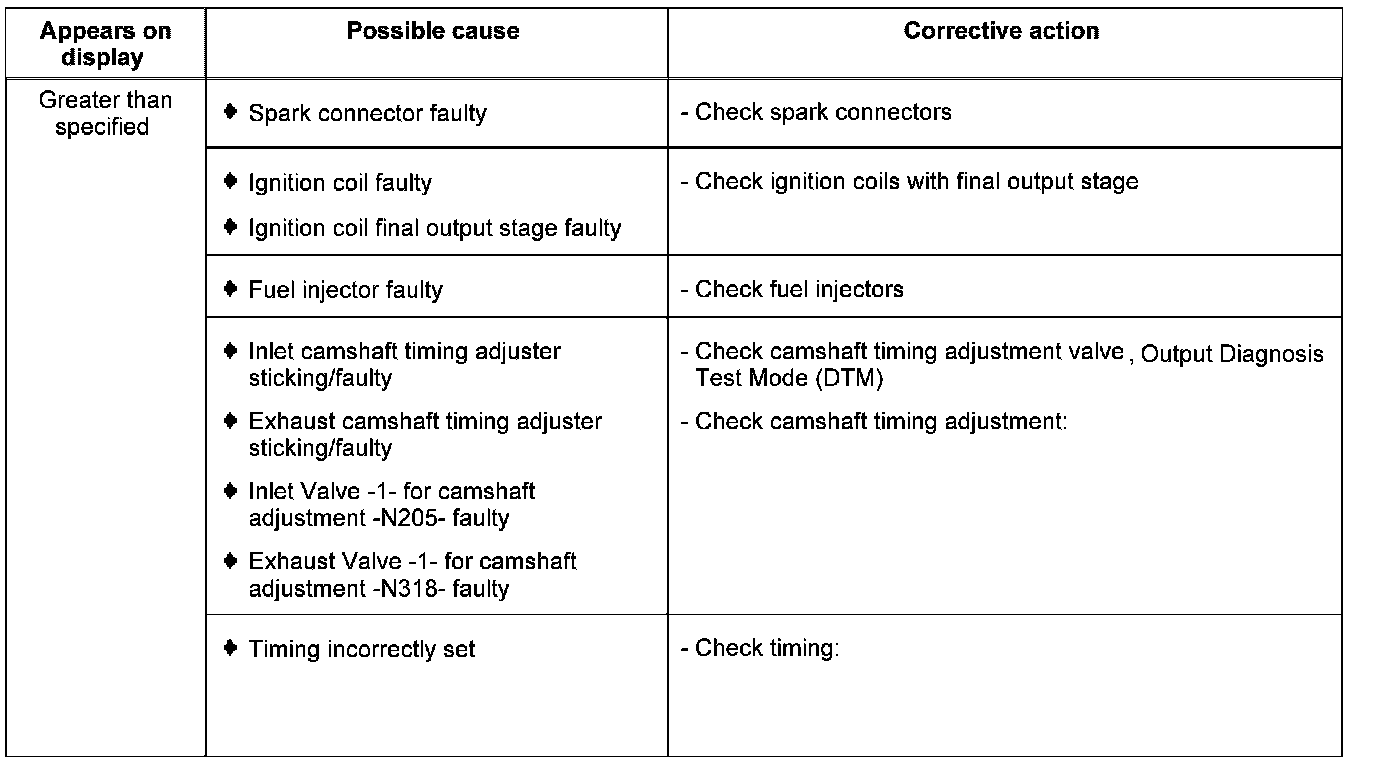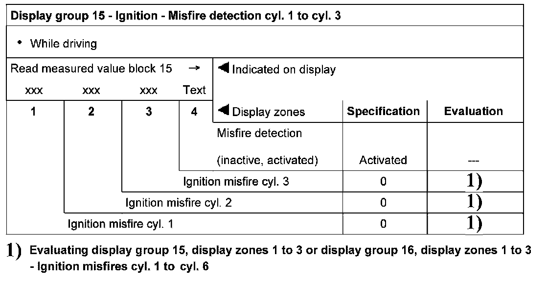 Display group 15 - Ignition - Misfire detection cyl. 1 to cyl. 3