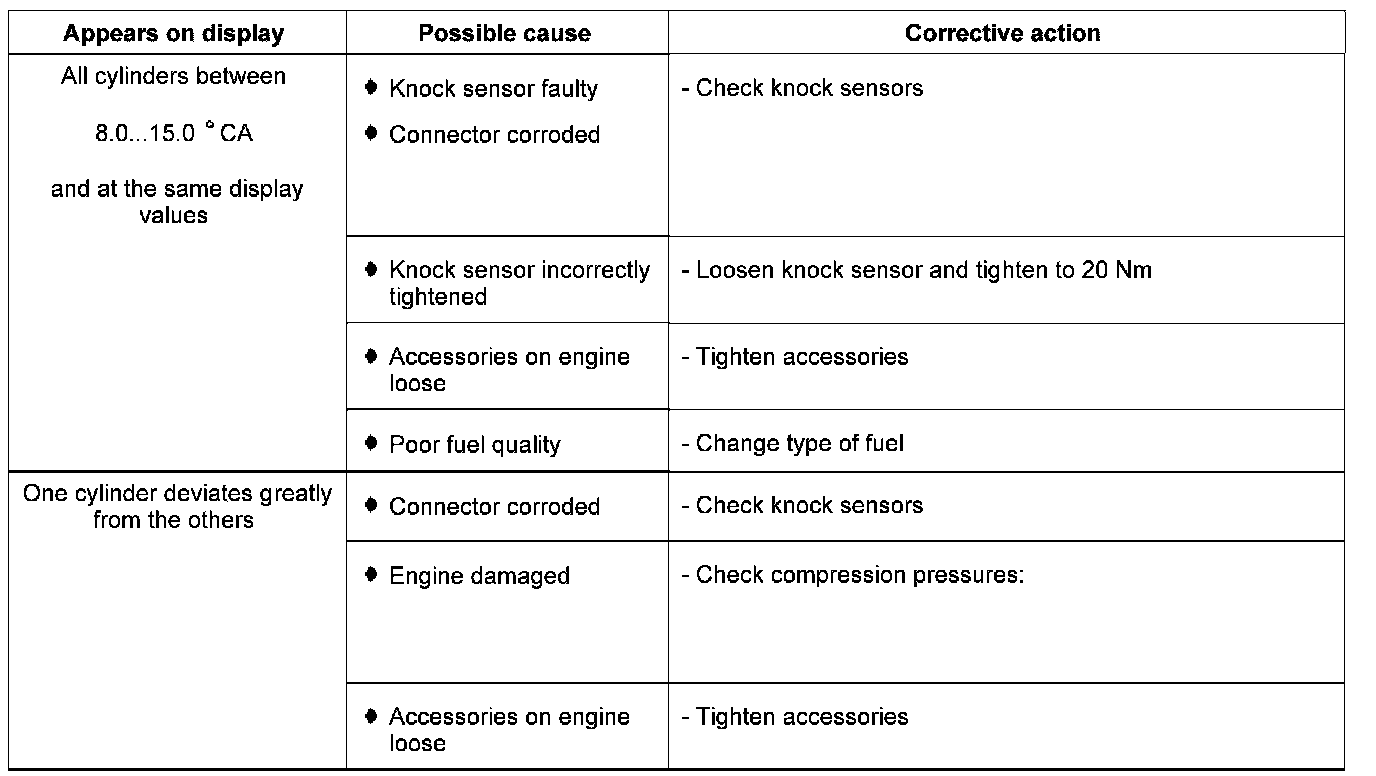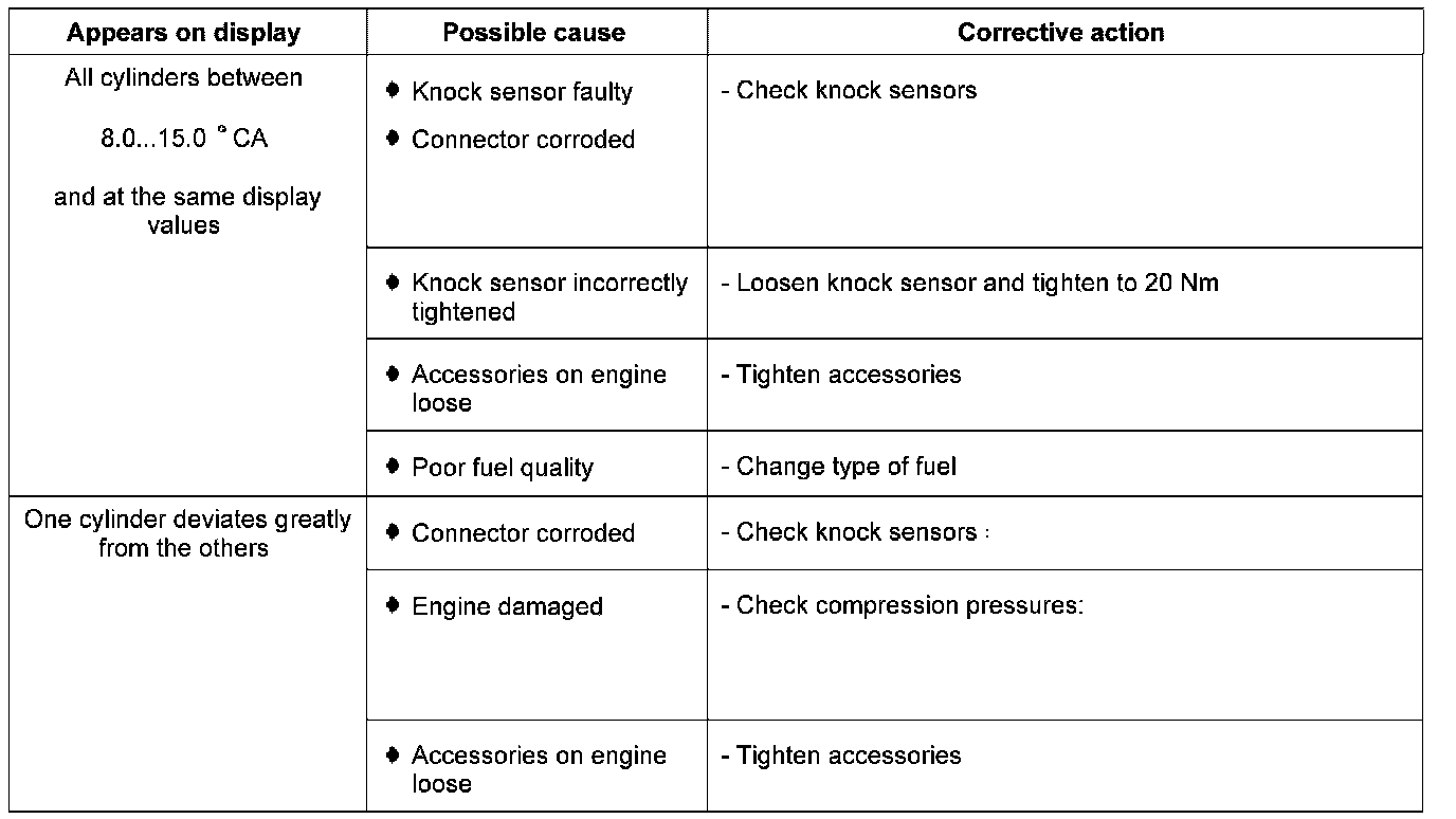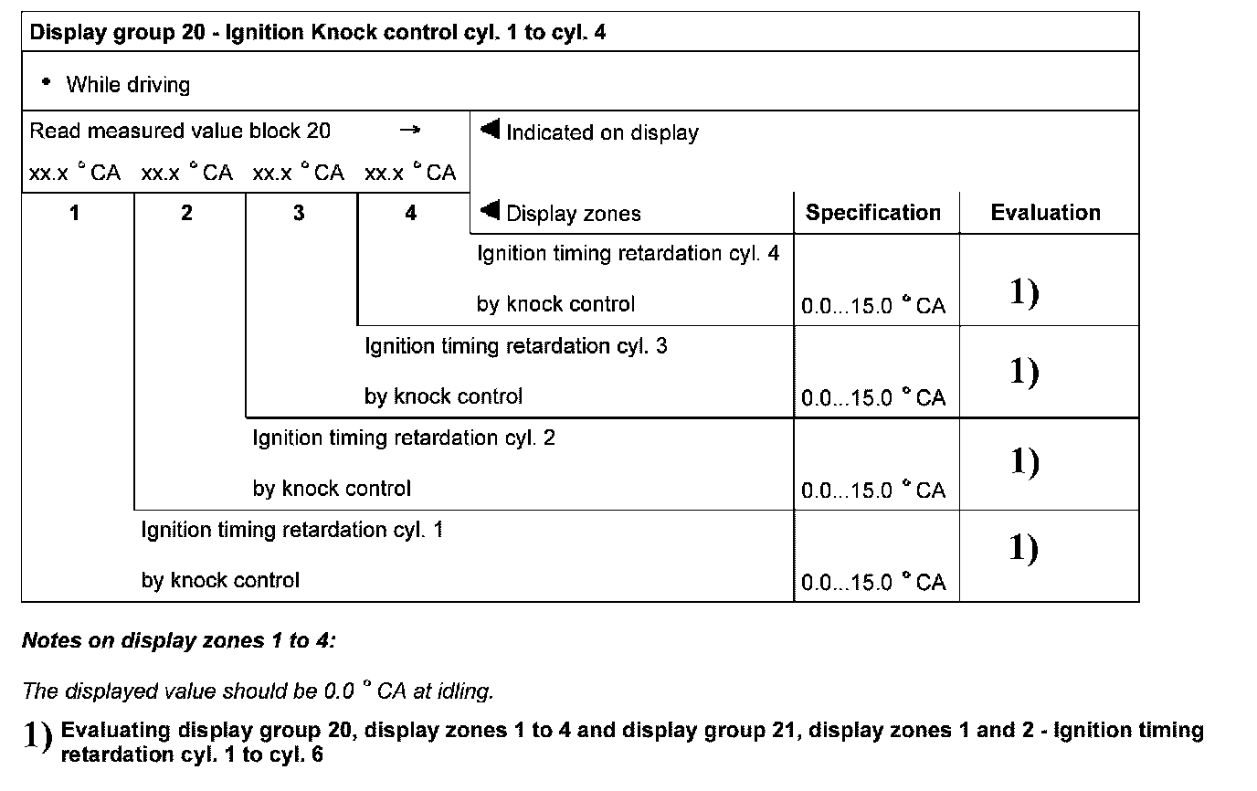 Display group 20 - Ignition - Knock control cyl. 1 to cyl .4