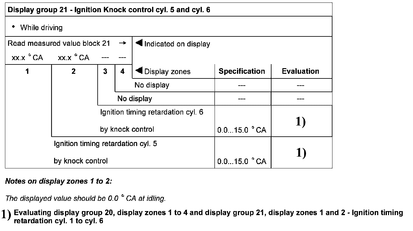 Display group 21 - Ignition - Knock control cyl. 5 to cyl .6