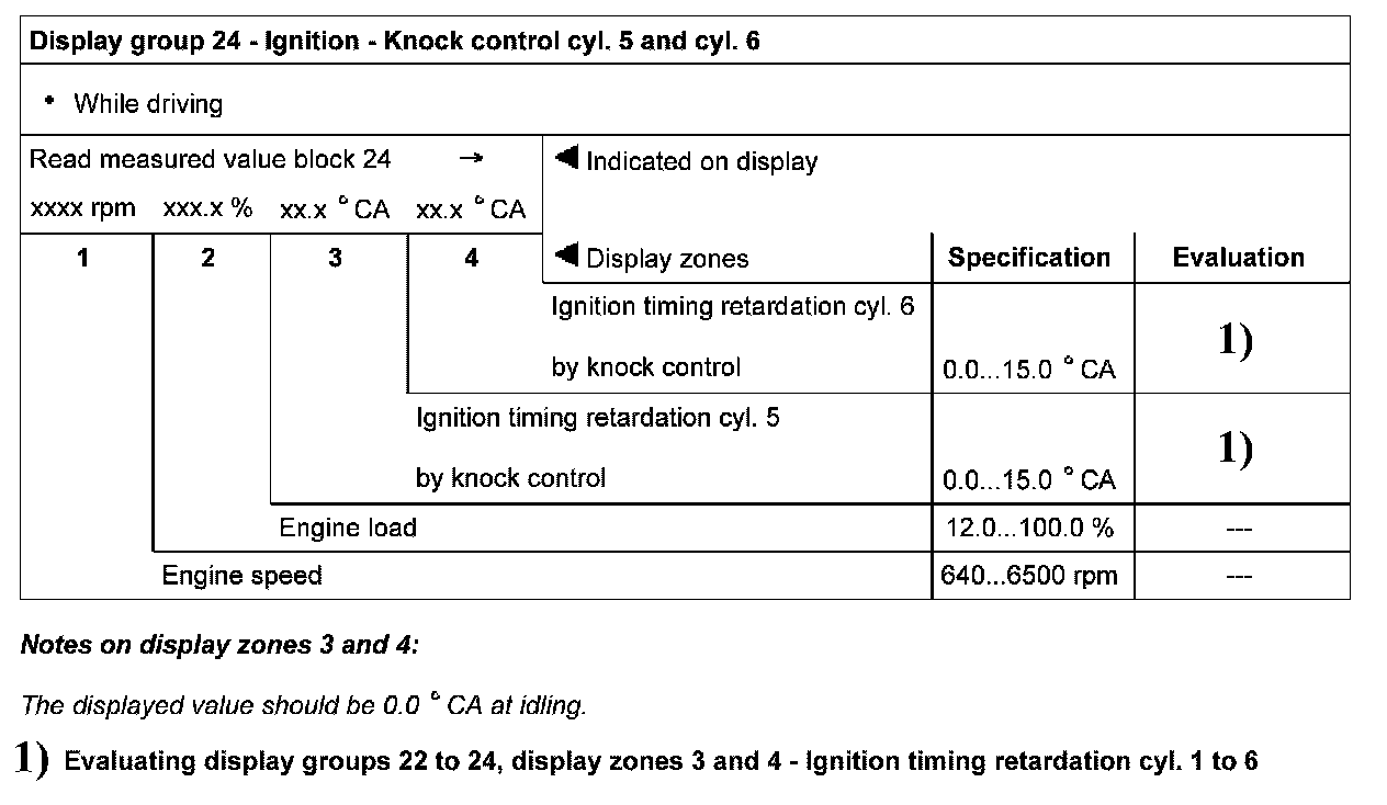 Display group 24 - Ignition - Knock control cyl. 5 and cyl .6