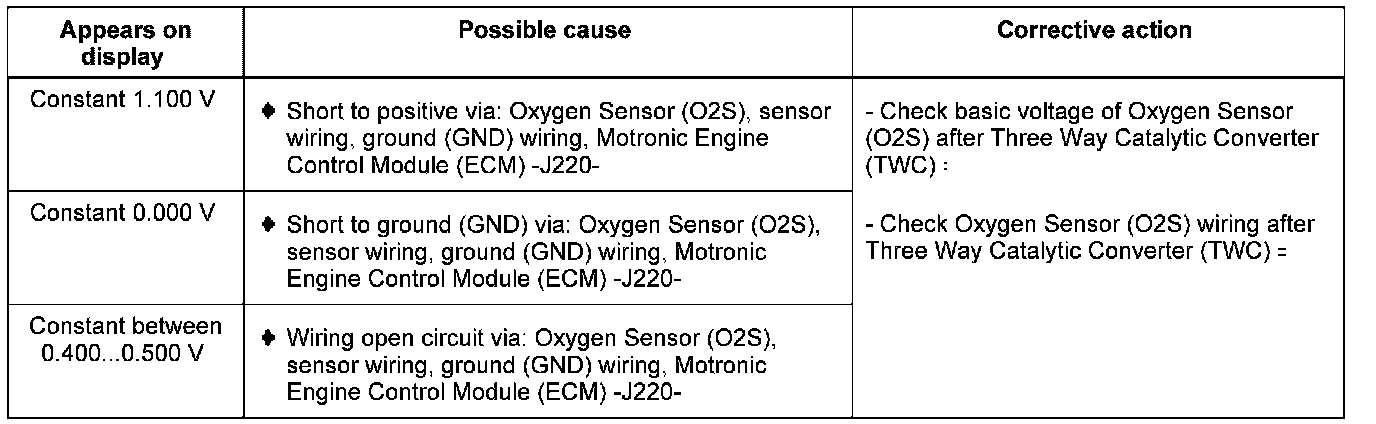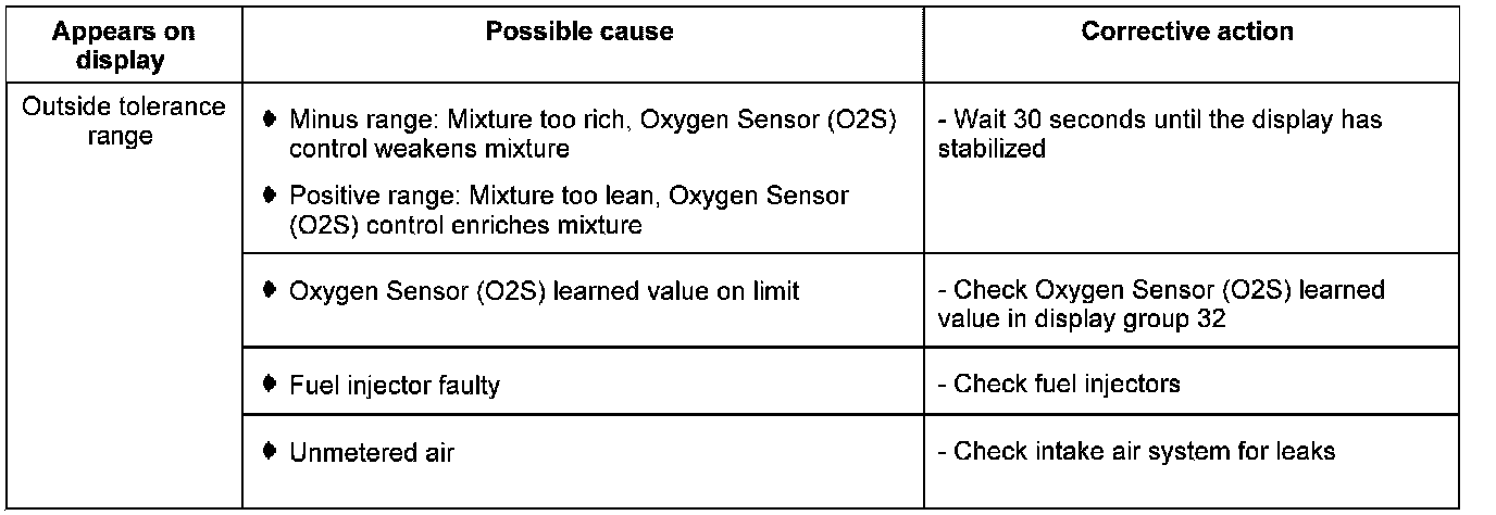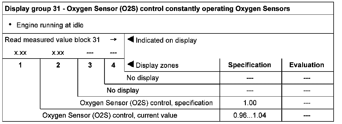 Measured value blocks, display groups 30...33, 99 - Oxygen Sensor (O2S) control, evaluating