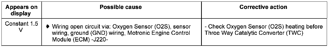 Evaluating display group 36, display zone 1 - Oxygen Sensor (O2S) voltage,Oxygen Sensor (O2S) after Three Way Catalytic Converter (TWC)