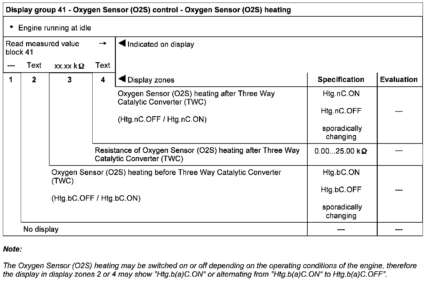 Display group 41 - Oxygen Sensor (O2S) control - Oxygen Sensor (O2S) heating