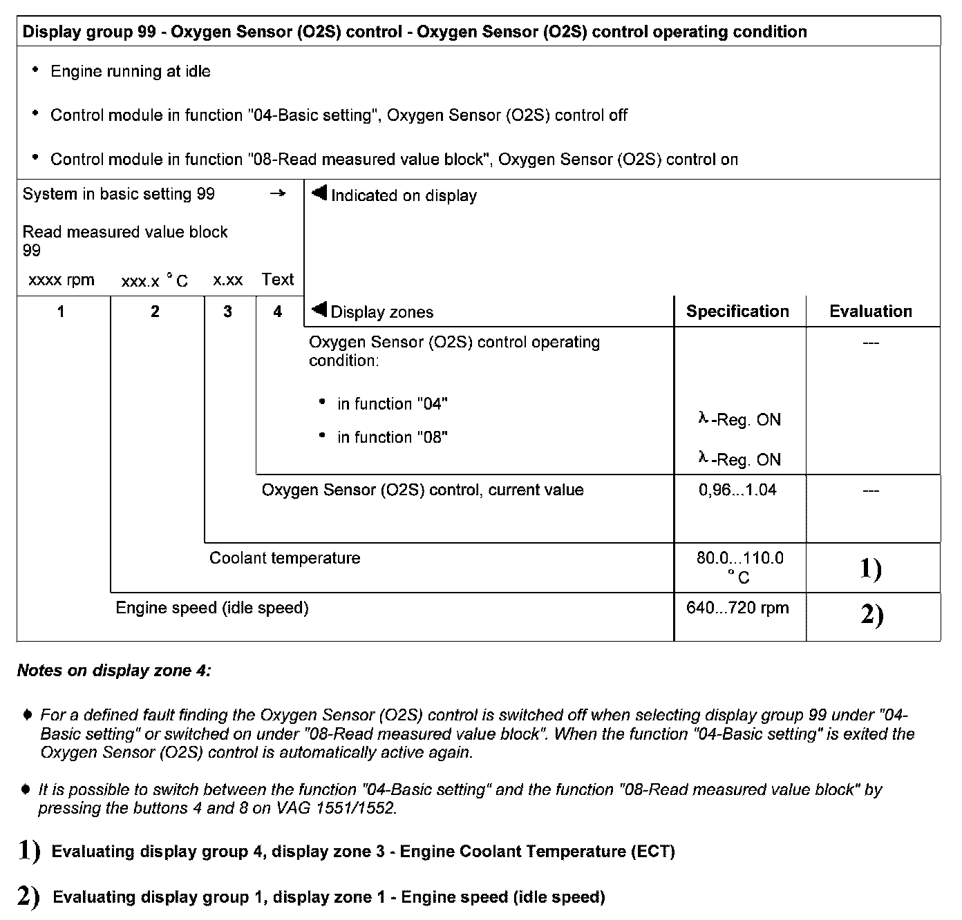 Display group 99 - Oxygen Sensor (O2S) control - Oxygen Sensor (O2S) control operating condition