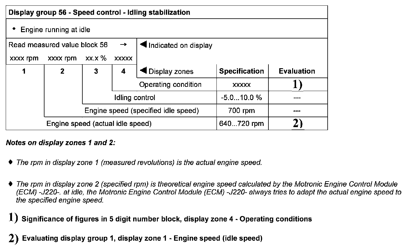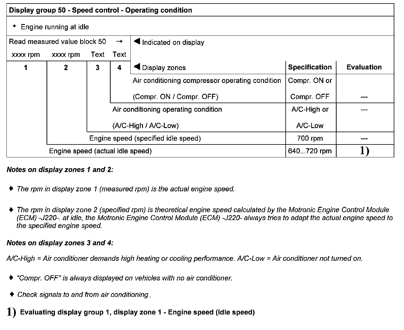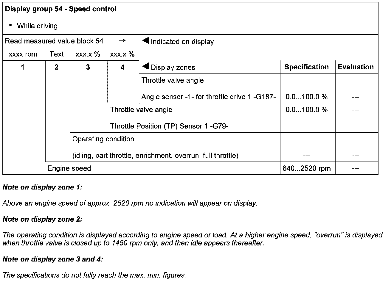 Measured value blocks, display groups 50...69 - Speed control, Evaluating