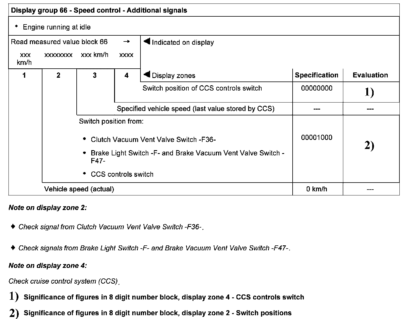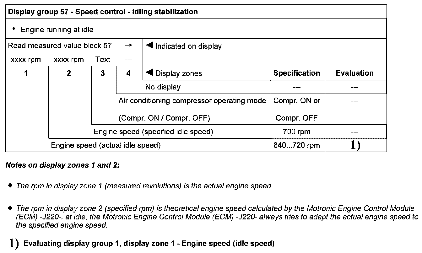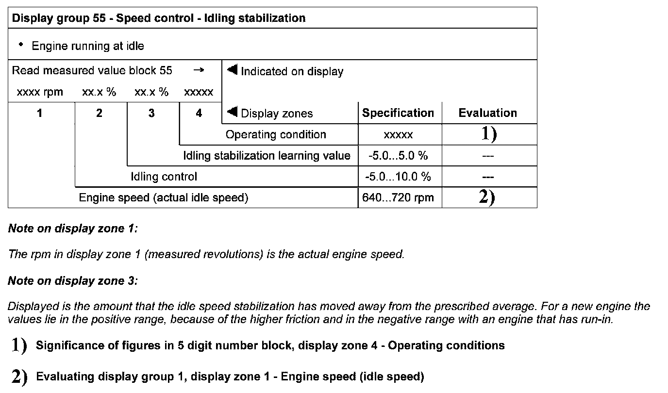 Measured value blocks, display groups 50...69 - Speed control, Evaluating