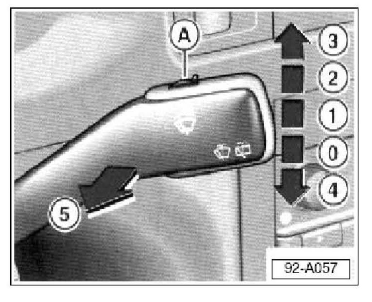 If, after the intermittent wiper function (with rain sensor operating) the ignition is switched OFF then ON again, the rain sensor function must be reactivated by switching the wipers to position -0- (OFF) then to the intermittent position -1-.