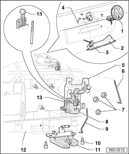 - Remove bolt, disconnect connector for switch and remove handle from lid.